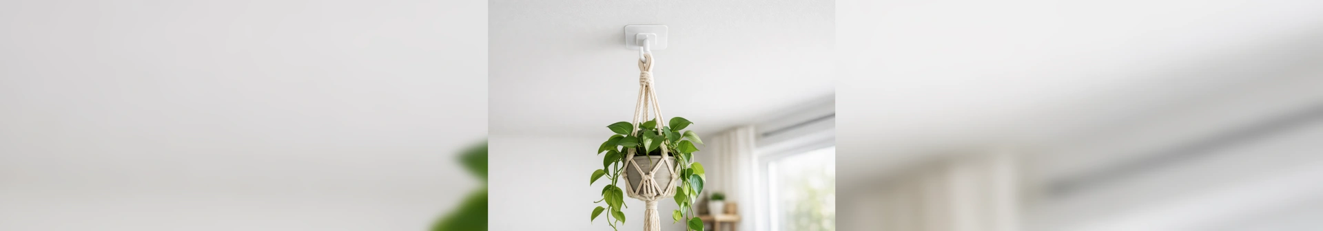 Start with one or two hooks to test your specific ceiling surface before committing to a full indoor garden. Hang a lightweight potted plant, wait 48 hours, and gently tug the hook to confirm the bond. This small-scale trial protects you from widespread adhesive failure and helps you fine-tune placement. Once you've confirmed the method works in your space, you can confidently expand your collection, knowing your walls - and your deposit - remain intact.